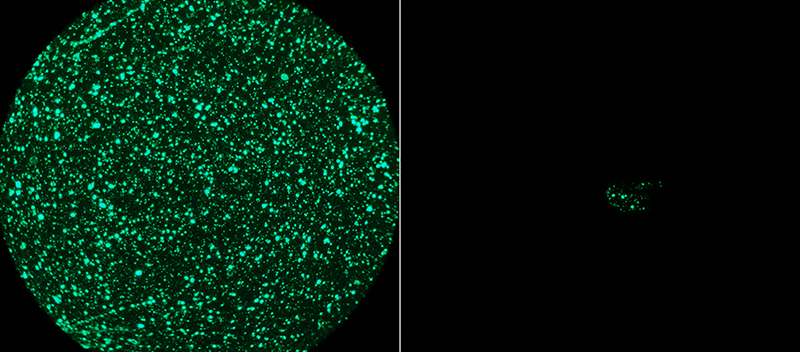 On the left is illumination of the entire field with the position open. On the right is an image of the hole in the cardboard.