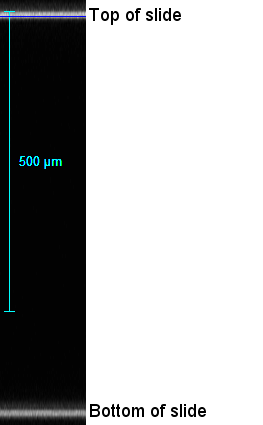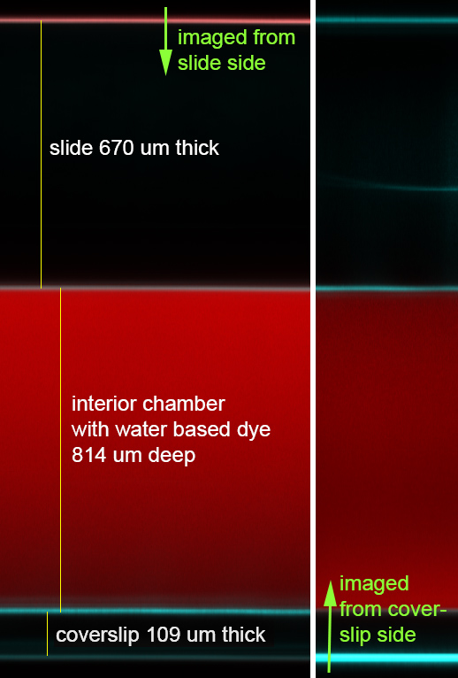 Problem: The coverslip is supposed to be 170 um thick, the slide 1000 um, and the chamber a little over 1000 um.