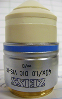 Result: The 40X water immersion objective with the metal top does not work but the 40X with the plastic top does work.