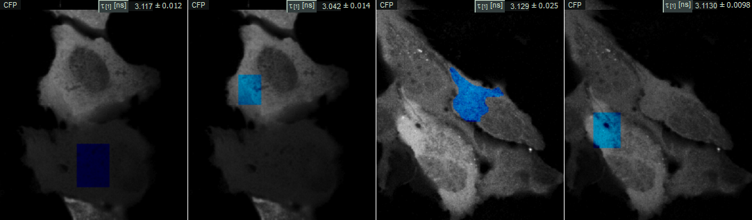 Based on these results we believe we imaged Forster Resonance Energy Transfer in the time domain using the PicoQuant pulsed 445 nm laser as excitation source and emission in 460-500 nm range.