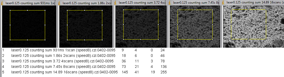 And now photon counting, which requires laser power below 0.5 as used in images above.