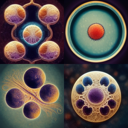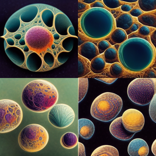 This software was definitely programmed with a fantasy images and no knowledge of cell biology. The AI bot has a specific style or vision.