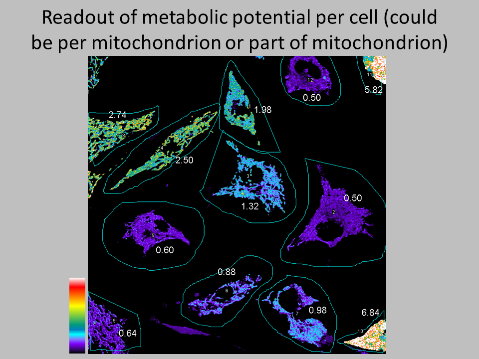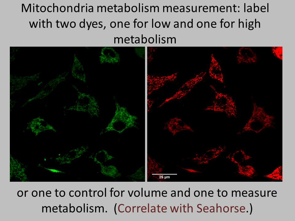 The Seahorse measures in bulk. Imaging allows physiologic measurements at the cell or organelle level. For instance, using a pair of dyes for mitochndria function.