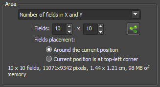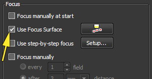 These points are propagated to the Acquire > Scan Large Image menu by clicking on the green points icon (left) and clicking the checkbox to use the focus points (right).