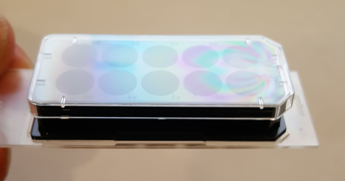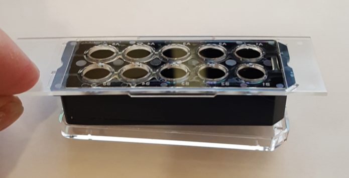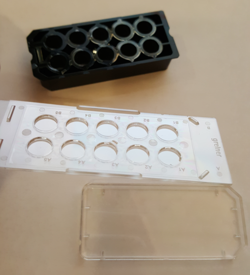 When using these, need to be careful not to bump the vlack plastic because the seals between the chamber and slide weak, but for small volume staining, may be better with black plastic removed.