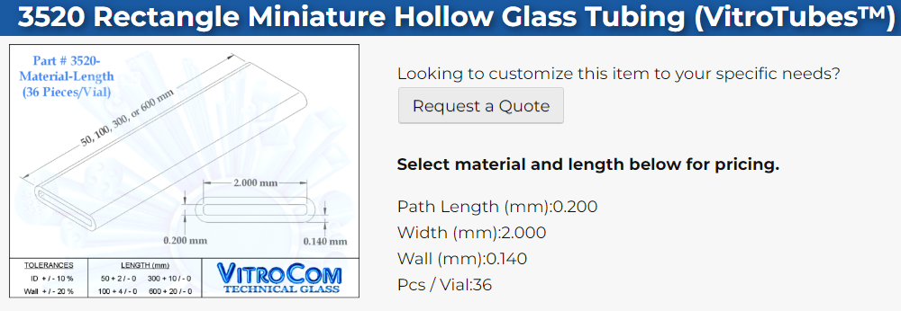 For materials science, we've found that tubes with a flat surface and a wall thickness of 0.14 mm work well.