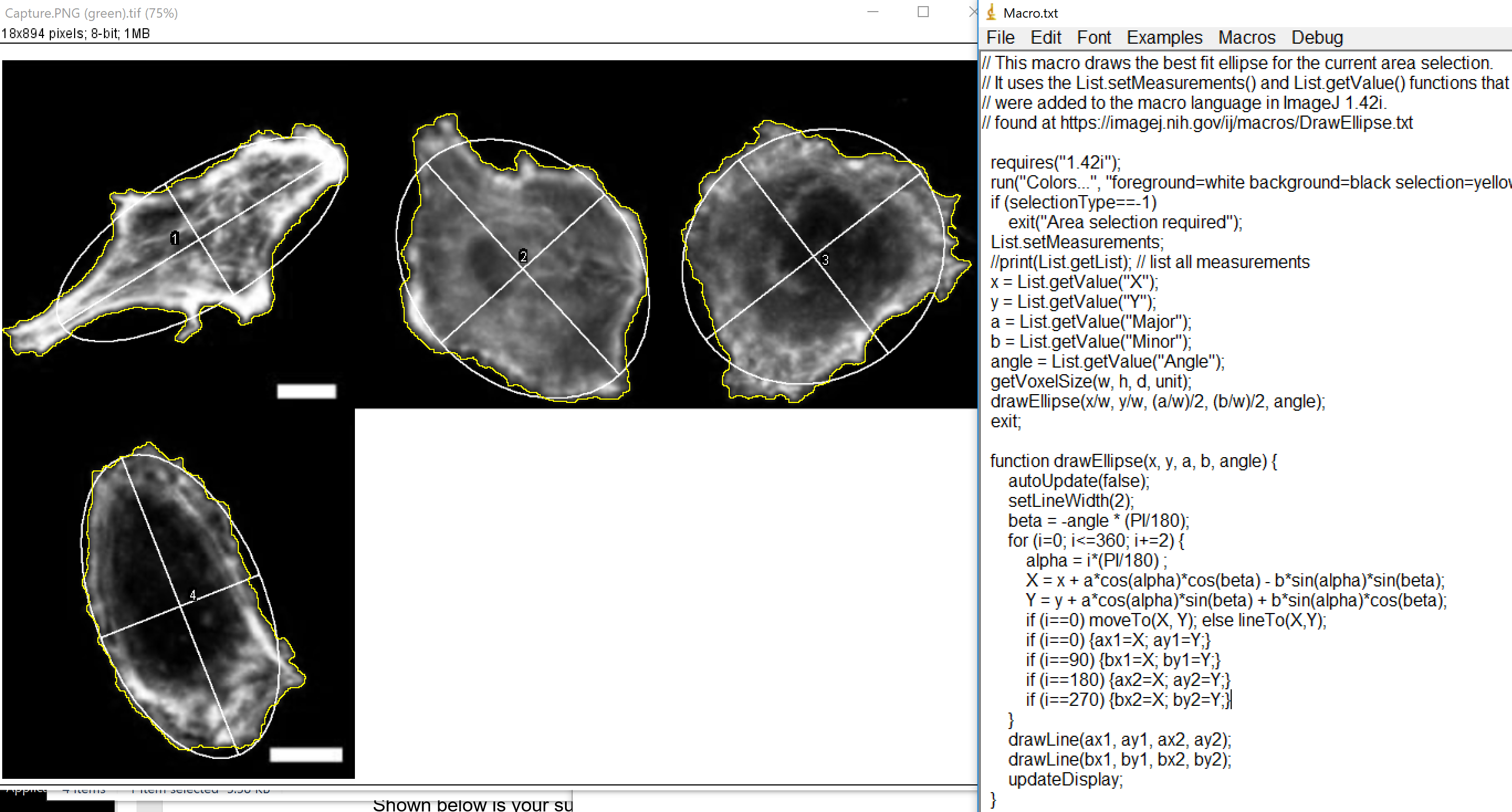 * Needs to have open an image and a results window with X, Y, Major, Minor, angles measured.