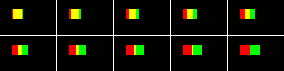 In the following example, a square 10 X 10 pixels in two channels started completely overlapped. The background value = 1; if it were zero, the results would be different. The square was iteratively shifted one pixel in the X axis for each measurement. This meant that there was a 10% reduction of overlap. In the table below, look at the first column and the third column (Rtotal) for Pearson's coefficient.