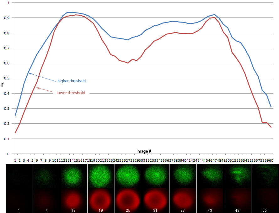Pearson's correlation (r) on a stack of images