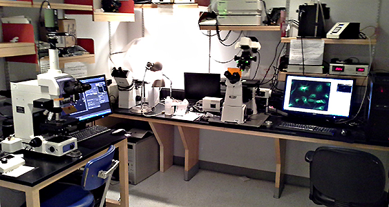 Photo shows microscopes as installed in a previous location. These same scopes have been moved to MSB 530.