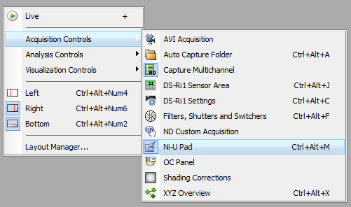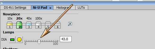 To adjust the brighfield light, use the slider in the Ni-U Pad.