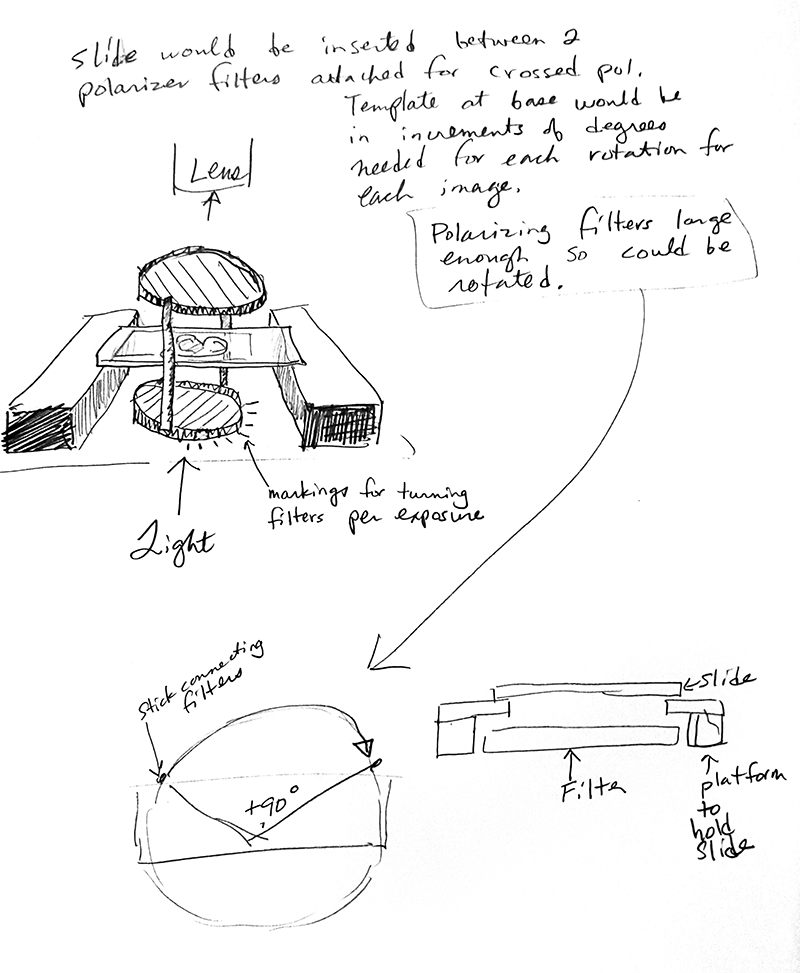 To take pictures with a dissection microscope at a few angles with sample between crossed polarizers.