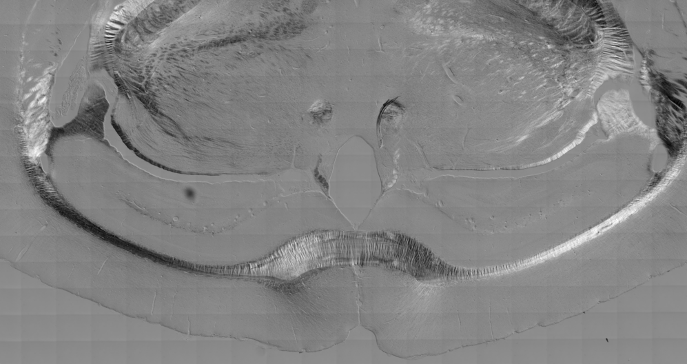 Note the bilateral symmetry in a slice of mouse brain imaged by Nomarksi optics.