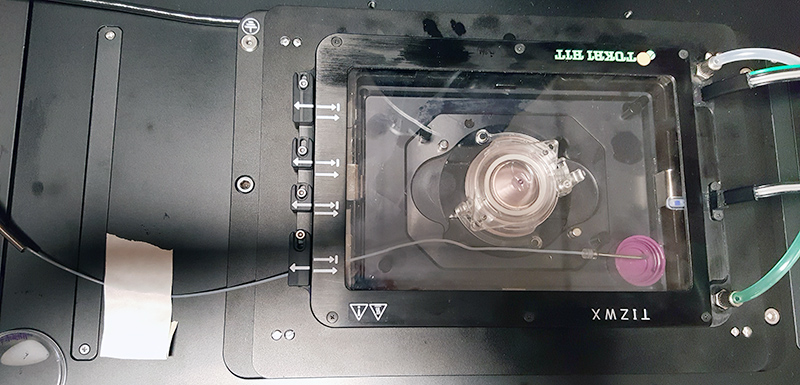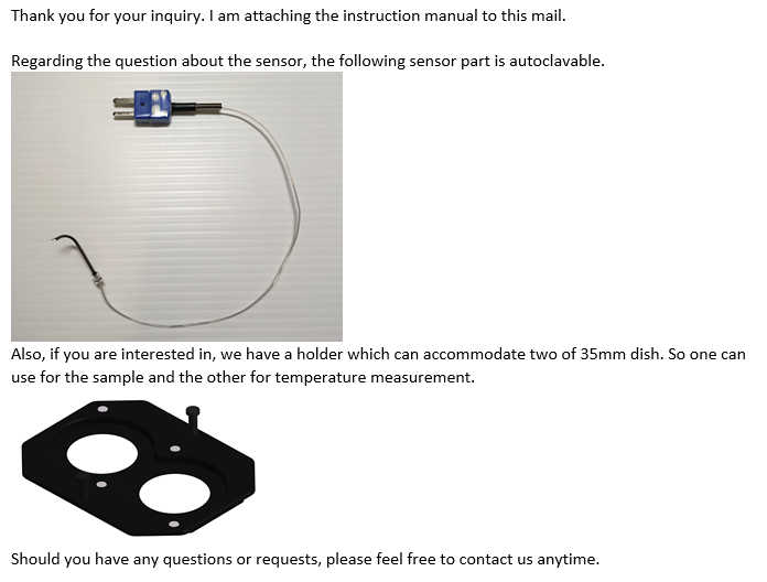 They sell a special stage insert that fits two dishes so that one may be used for imaging andthe other may have the temperature sensor in it.