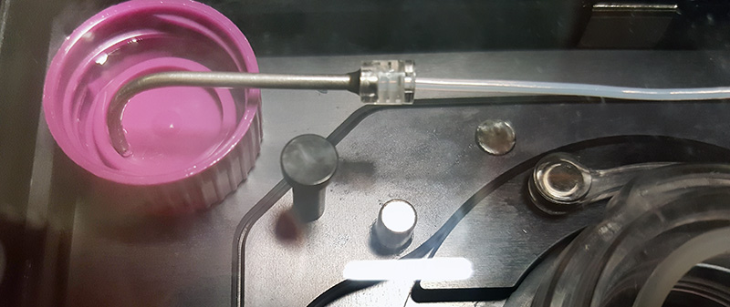 The chamber should be hydrated. The manual suggests 26 ml of distilled water in the metal trough at the perimeter of the stage insert.