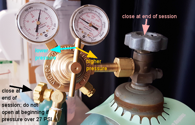 After opening the valve, the pressure can be set between 15 and 27 PSI for operation. As pictured, the pressure is at 20 PSI.