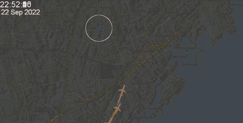 Most planes skirt the neighborhood, but 11:23 PM 22 Sep 2022 a plane appears to go directly over the apartment buildings on the Pelham/New Rochelle border on the NW side of the lake.