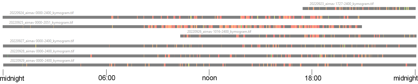 Looking at the kymogram data, the frequencies of flights agrees with what I thought based on noise.