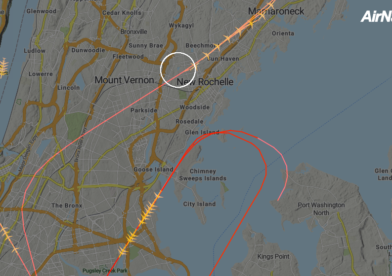 The expected trajectories, which diverge, for the flight that heads NE across Glenwood lake neighborhood are corrected, based on real data, later.
