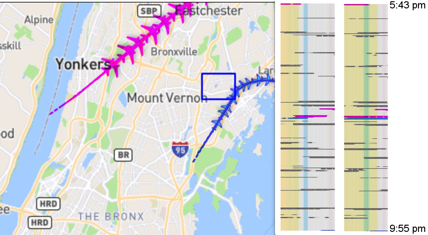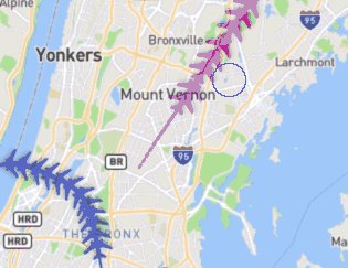 By the way, the flights coming from the south are mostly takeoffs from LGA. And the different colors represent different airports of origin. There is a key at https://webtrak.emsbk.com/panynj4