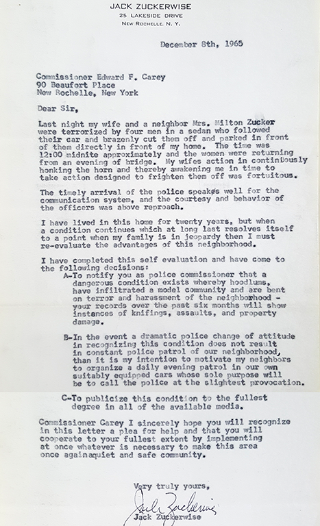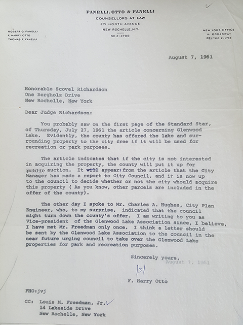 New Rochelle was considering turning down the offer of land to instead have it auctioned off. GLA pushed for a public park. (There is another letter, not found in these files, that says that after New Rochelle took possession of the land, none of it was to be transferred to private ownership. However, it appears that parcels were subsequently sold or title otherwise transferred in violation of the agreement.)