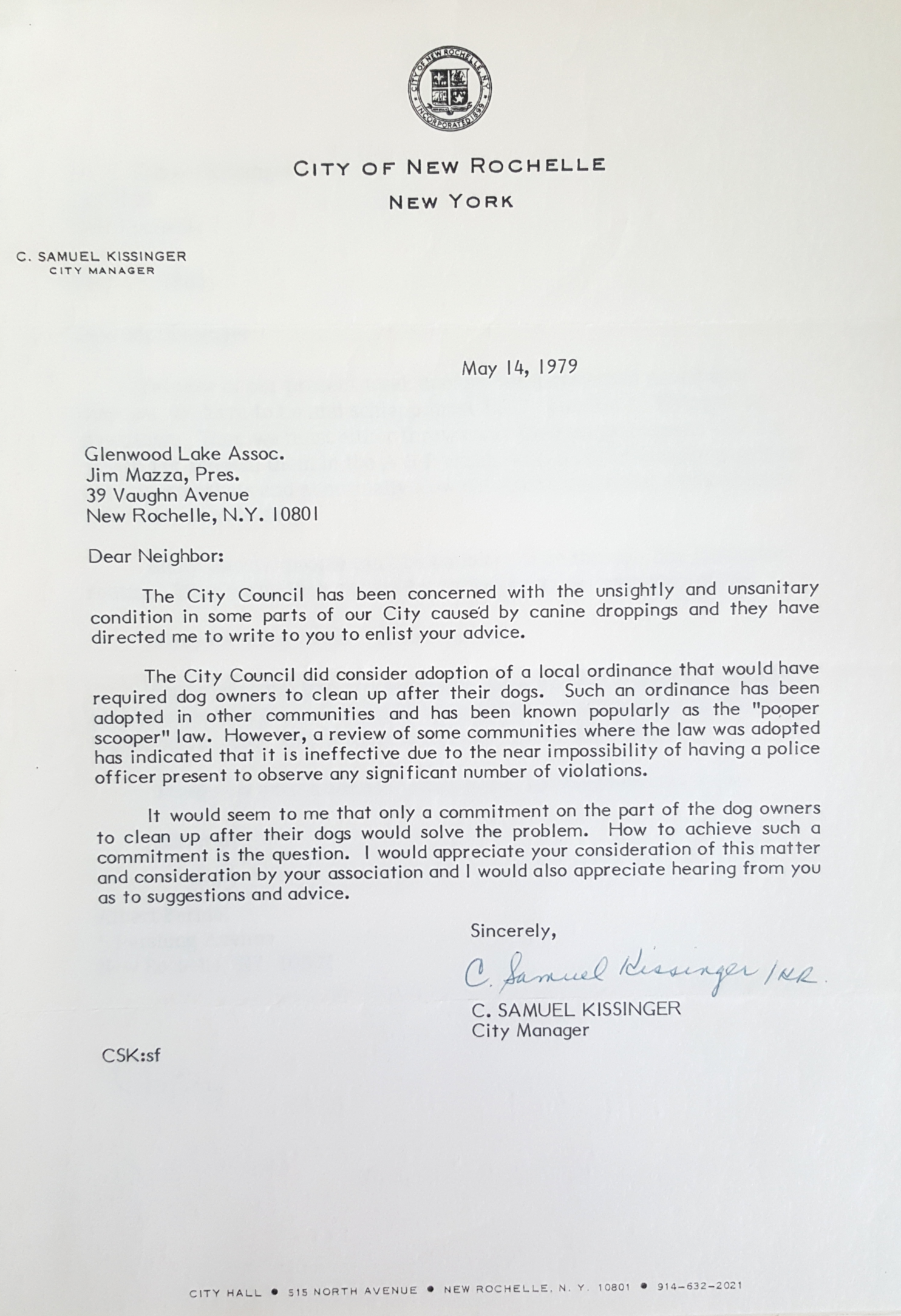 GLA at the forefront of pooper-scooper legislation. Actually, the letter implies there may have been resistance to it; in this activist community, probably seen as an assault on freedom. A later request in 1990 Backfence for adherence to the law and courtesy,