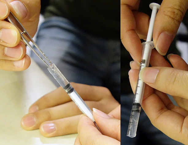 The syringe is a special type available in Europe. However, we have found at least one availablein the U.S. that works well too.