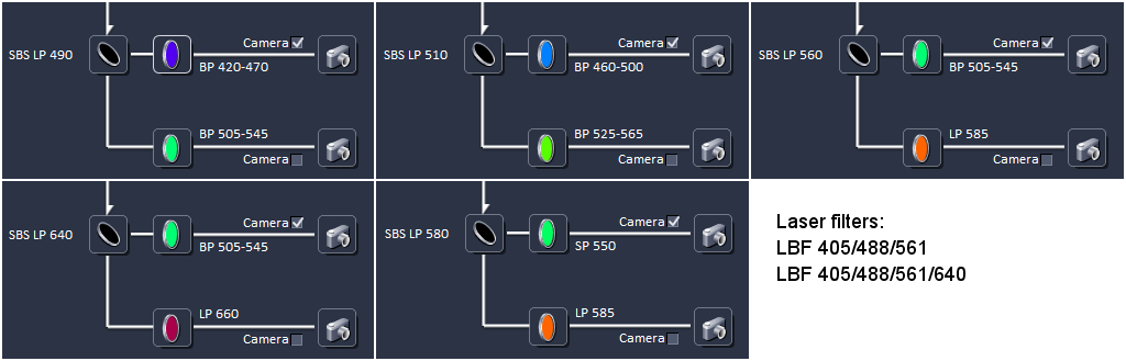 A problem with these filters is that in samples labeled with both a red probe (e.g. Alexa 555) and a far red probe (e.g. Alexa 647), when exciting at 561 nm, both colors are always visible. Therefore, we have proposed two harware solutions, but neither is implemented (yet).