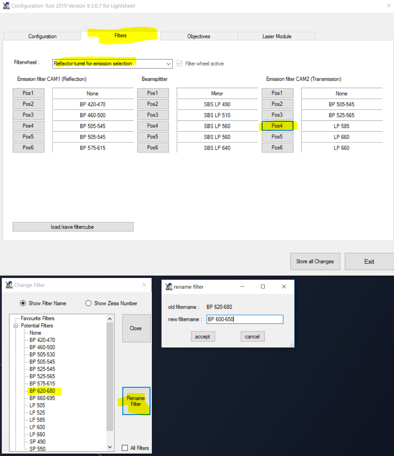 To rename a filter, you'd need to go to the configurator tool and load the database. Then pick one of the filters that you aren't using and rename to BP 600-650:
